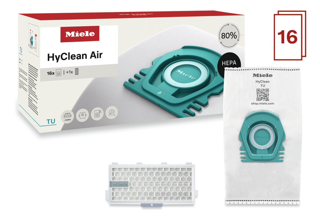 Maximize your investment with the TU Performance Pack HyClean Air—the ultimate value bundle that provides a full year's supply of premium vacuum bags at an exceptional special price. This comprehensive package delivers 16 high-performance vacuum bags plus a specialized HEPA filter, ensuring your Guard L1 or S1 vacuum maintains peak efficiency and superior air quality for extended periods. With 99.99% filtration performance through Miele's advanced AirClean system, this pack represents the smartest choice for households that demand consistent, professional-grade cleaning results.